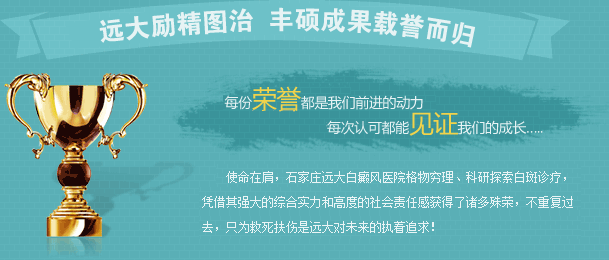 2014年,石家莊遠(yuǎn)大白癜風(fēng)醫(yī)院為實(shí)現(xiàn)名醫(yī)戰(zhàn)略,在專家力量上實(shí)現(xiàn)了整合和調(diào)整,強(qiáng)大的白癜風(fēng)博導(dǎo)陣容集體亮相,目前醫(yī)院匯聚了多名白癜風(fēng)診療資深醫(yī)生。